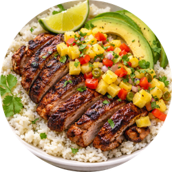 Jerk Chicken with Pineapple Salsa & Coconut Rice